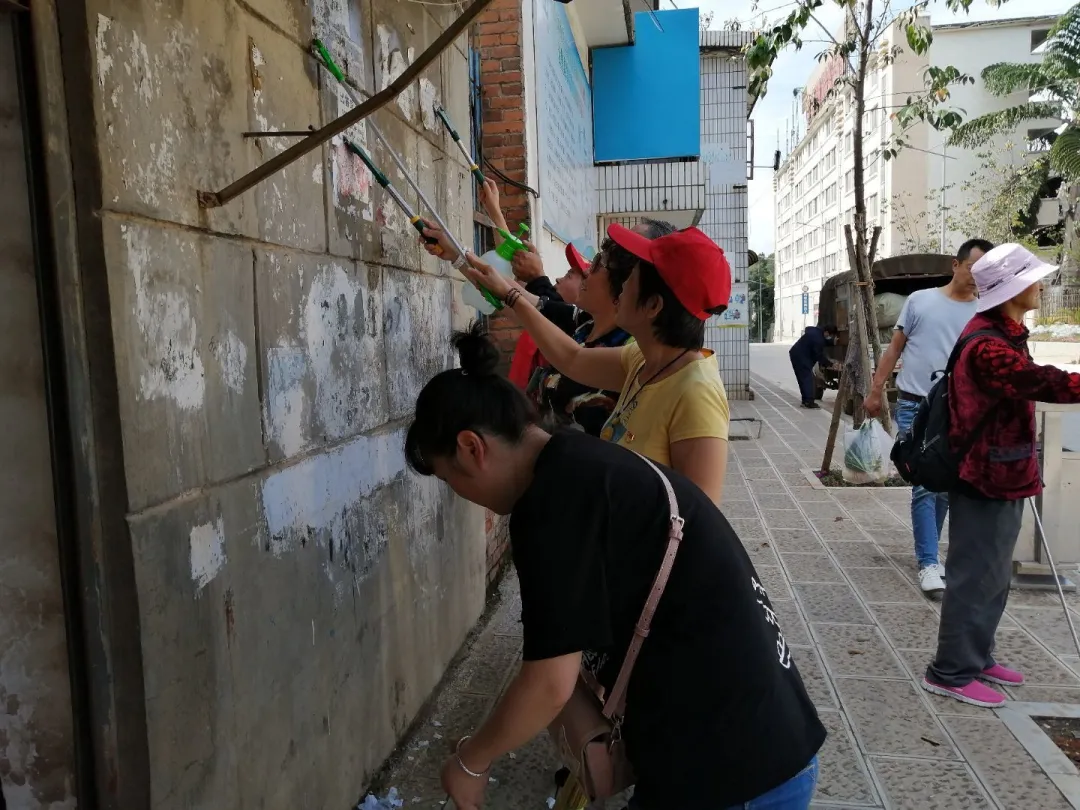 组织广大志愿者深入城区街道辖区内进行地毯式的排查,大家手拿铲刀、刷子、抹布、水桶等工具,对墙面、电线杆、广告牌、铺面外等位置对小广告采用刮刷、铲除、手撕等方法进行清除,遇到黏贴牢固的“牛皮癣”,党员居民志愿者用水泡、用镰铲,确保清除干净、彻底。