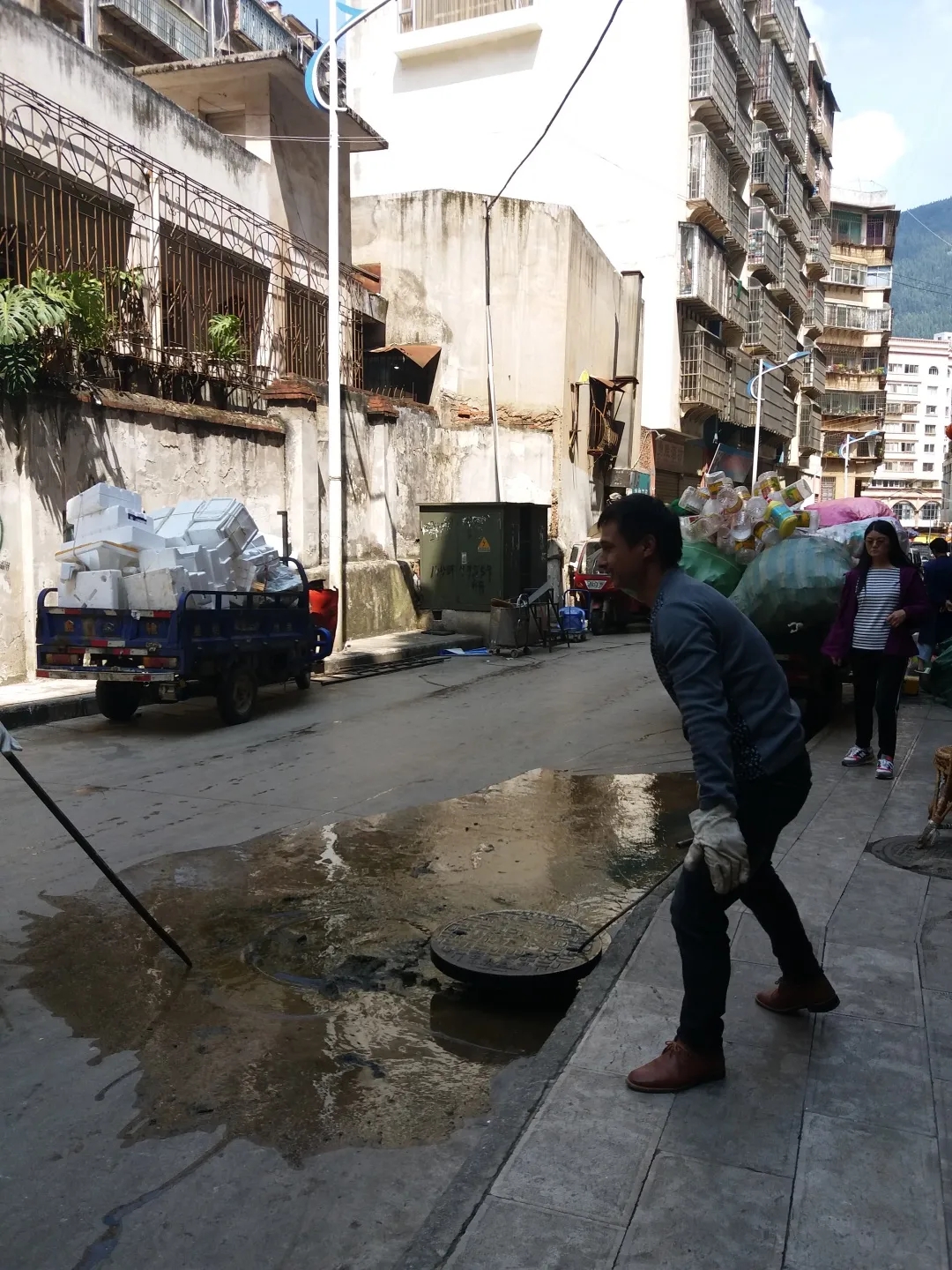 市政府办公室网格员到挂包的金湖西社区开展爱国卫生网格化管理工作时,排查发现卫生死角、成堆垃圾7处,立即主动寻找清运车辆,并和社区工作人员一起进行清理。