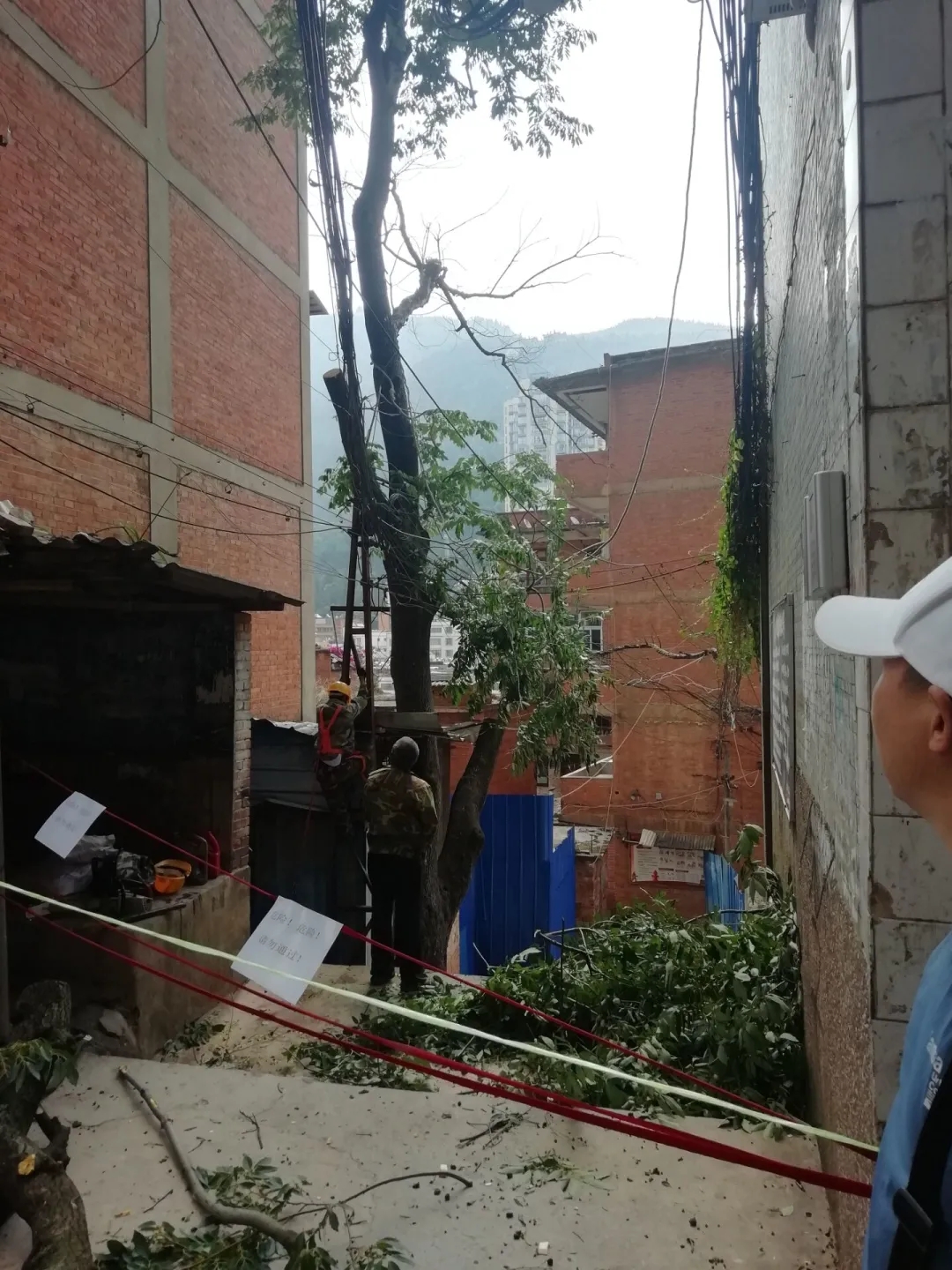 “社区吹哨,党员报到”,工作人员与各单位党员群众齐心协力,伐木清障同步进行,危树砍伐工作有序推进,在大家的共同努力下,这一困扰居民群众多日的隐患得以解除。自党史学习教育开展以来,民权社区各网格单位陆续发力,街道“党建联盟”、社区“大党委”持续发挥作用。