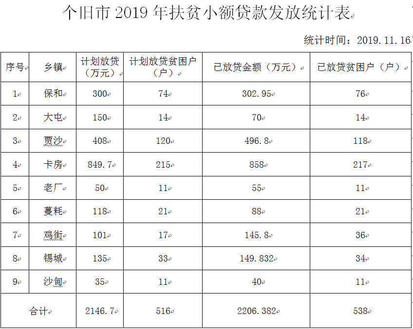 根据州扶贫办《关于做好2019年扶贫小额信贷工作的通知》(红开办便笺〔2018〕224号)和个旧市财政局、个旧市扶贫办《关于下达2019年中央、省级财政专项资金项目计划的通知》要求,我市按照建档立卡贫困户自愿申请、村组核实推荐、乡镇审核申报、金融部门自主放贷并季度申报贴息等程序,已完成《个旧市2019年度扶贫小额信贷调整计划》放贷工作,现将个旧市2019年扶贫小额信贷项目情况进行公告公示,公告期:2019年11月16日—2019年11月26日,联系电话:2128879。