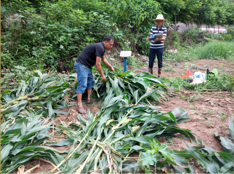 个旧市农业局畜牧技术推广站2020年试验牧草青贮玉米种植于保和乡冷墩村;试验地坐标:经度102°58'37.76",纬度23°12'59.91";海拔:427米。试验青贮玉米品种为:金玉98、良禾66,共2个品种;小区面积3米*5米=15平方米,3次重复;种植时间:2020年3月11日;收割测产时间:2020年6月15日;生长期96天。测产情况如下:一、(1)金玉98(a)平均株高241.5厘米,小区(15㎡)产量81.5公斤,平均亩产3622.40公斤;(2)金玉98(b)平均株高254.7厘米,小区(15㎡)产量65公斤,平均亩产2889.03公斤;(3)金玉98(c)平均株高190.2厘米,小区(15㎡)产量47公斤,平均亩产2088.99公斤;二、(1)良禾66(a)平均株高228.7厘米,小区(15㎡)产量82公斤,平均亩产3644.63公斤;(2)良禾66(b)平均株高205.7厘米,小区(15㎡)产量69公斤,平均亩产3066.82公斤;(3)良禾66(c)平均株高186.2厘米,小区(15㎡)产量75.7公斤,平均亩产3364.61公斤。