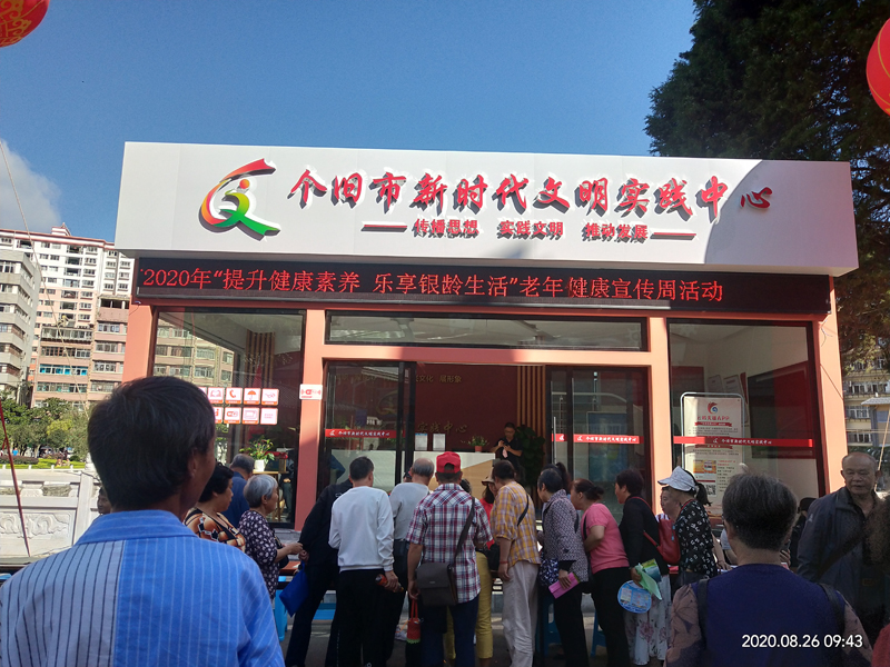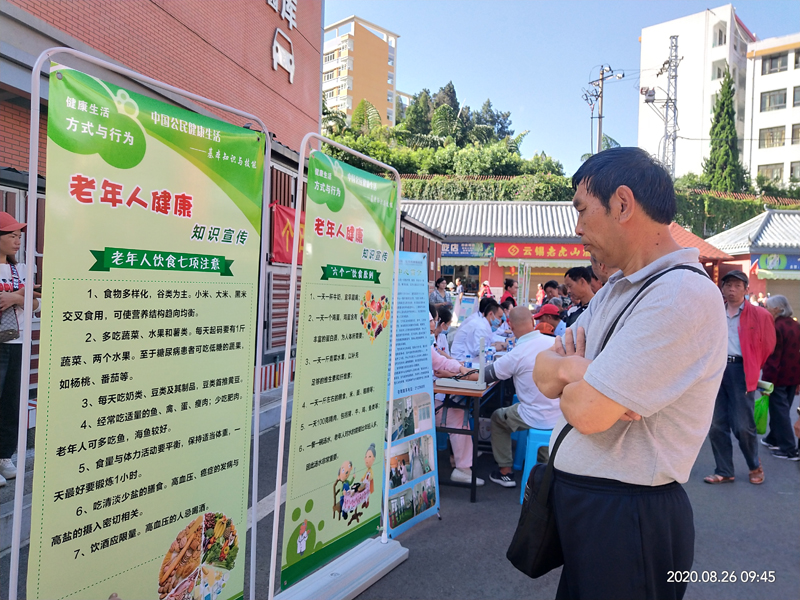 为进一步宣传普及老年健康政策和科学知识,切实提高我市老年人健康水平,2020年8月26日,由个旧市卫生健康局组织在个旧市新时代文明实践中心开展了以“提升健康素养,乐享银龄生活”为主题的2020年老年健康宣传周宣传活动。