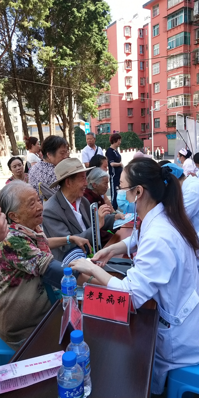 活动现场,市卫健局组织了红河州第三人民医院、个旧市人民医院、市中医医院医生护士7人为群众开展免费义诊、健康咨询、量血压、测血氧;针对老年人疾病特点宣传老年人健康管理、老年健康与医养结合、高血压/糖尿病患者健康管理等国家基本公共卫生服务政策,宣传疫情防控、营养膳食、运动健身、心理健康、伤害预防、疾病预防、合理用药、康复护理、生命教育和中医养生保健等科学知识。