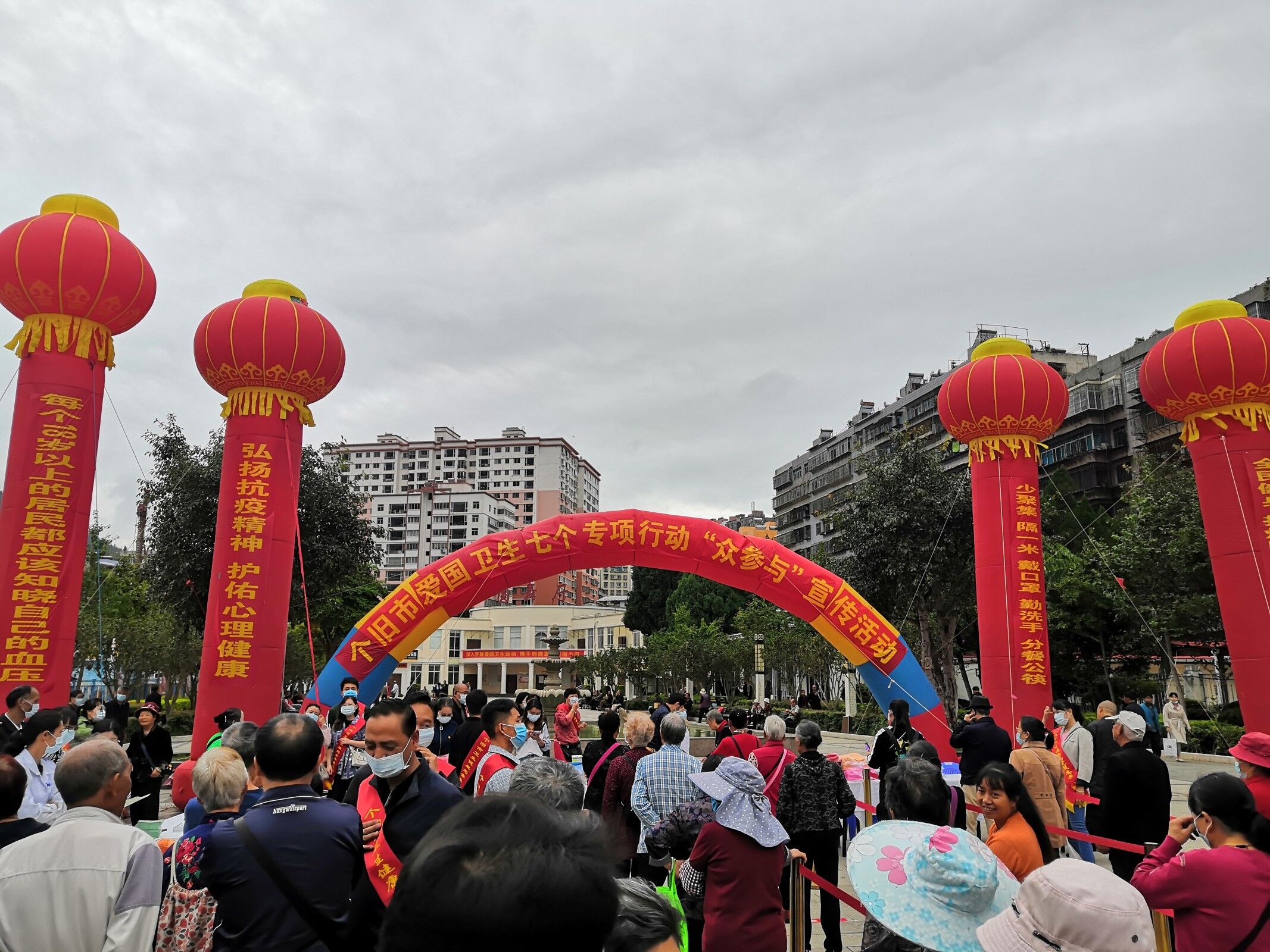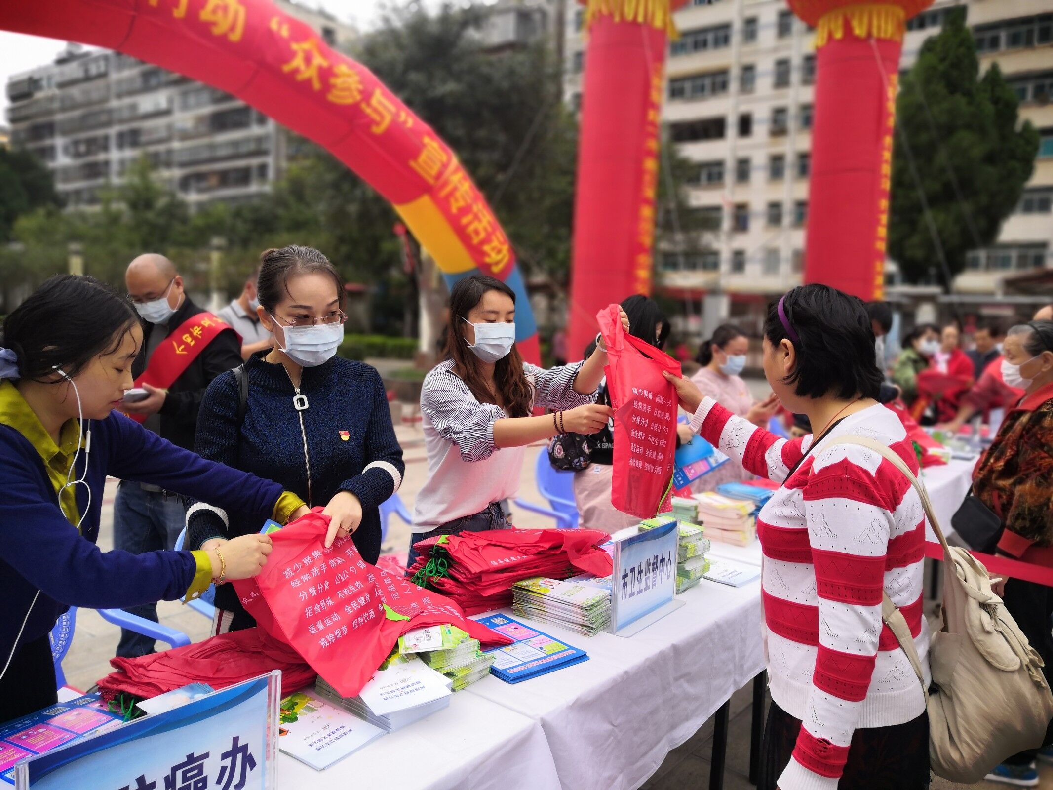 金秋送爽“双节”至,丹桂飘香念党恩。为全面推进“清垃圾、扫厕所、勤洗手、净餐馆、管集市、常消毒、众参与”爱国卫生 7 个专项行动,引导广大干部群众增强文明意识、卫生意识、环境意识和家园意识,营造爱国卫生人人参与、健康生活人人享有的良好氛围。10月7日,在工人文化宫由个旧市推进爱国卫生“7个专项行动”指挥部、个旧市卫生健康局主办,个旧市爱国卫生“众参与”专项行动组成员单位及相关单位,市级各医疗卫生单位14家单位,50余人,个旧市卫生健康综合监督中心派出2名人员参与了现场宣传活动。