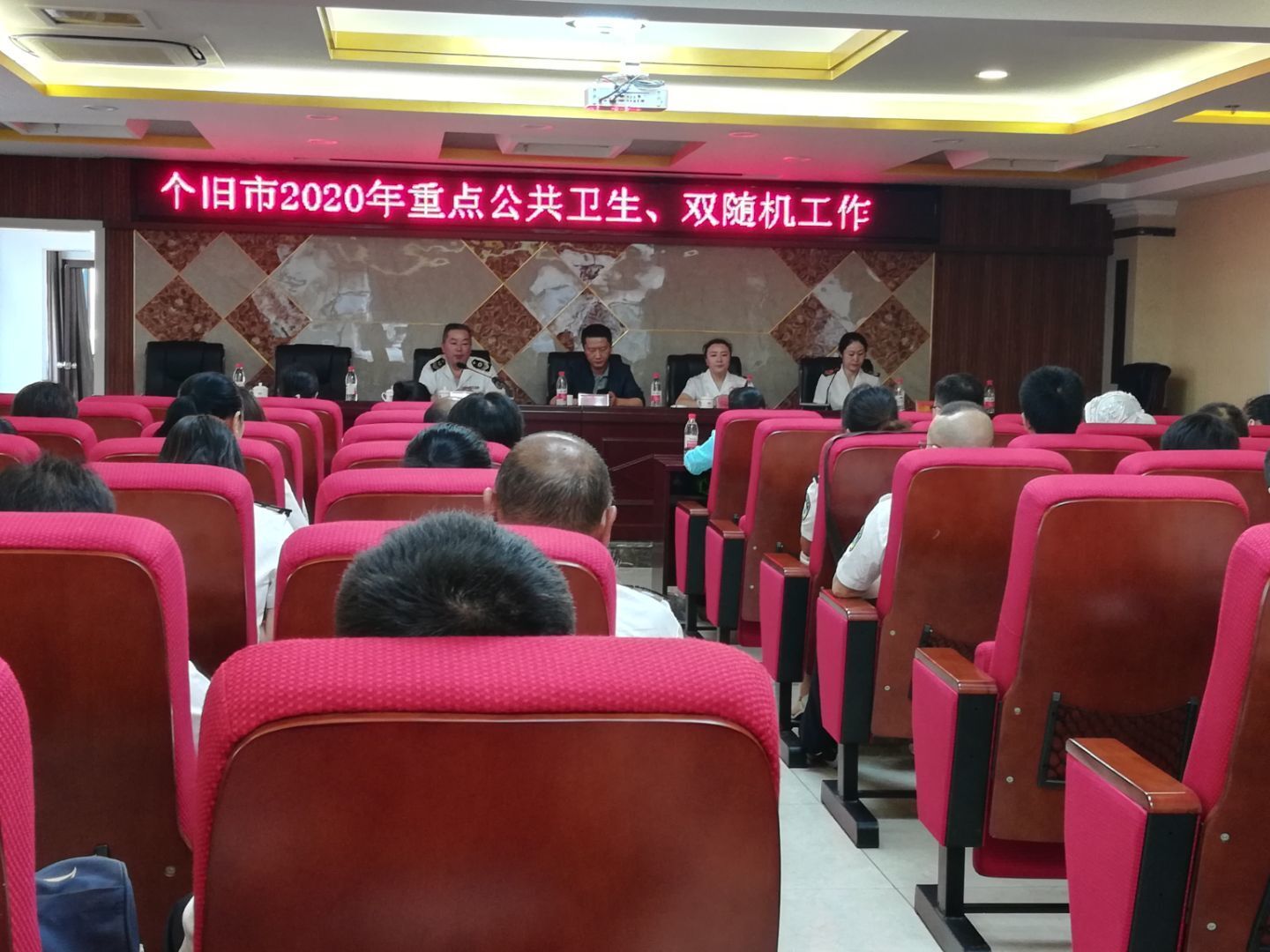 为切实提高卫生监督员和监督协管员的业务水平,按质按量完成2020年个旧市迎接国家卫生城市复审重点场所组工作,2020年5月26日,市卫生健康综合监督中心组织召开了2020年迎接国家卫生城市复审重点场所组工作培训会议,对全市卫生监督员、各协管站全体专兼职卫生监督协管员共计45人进行了培训。
