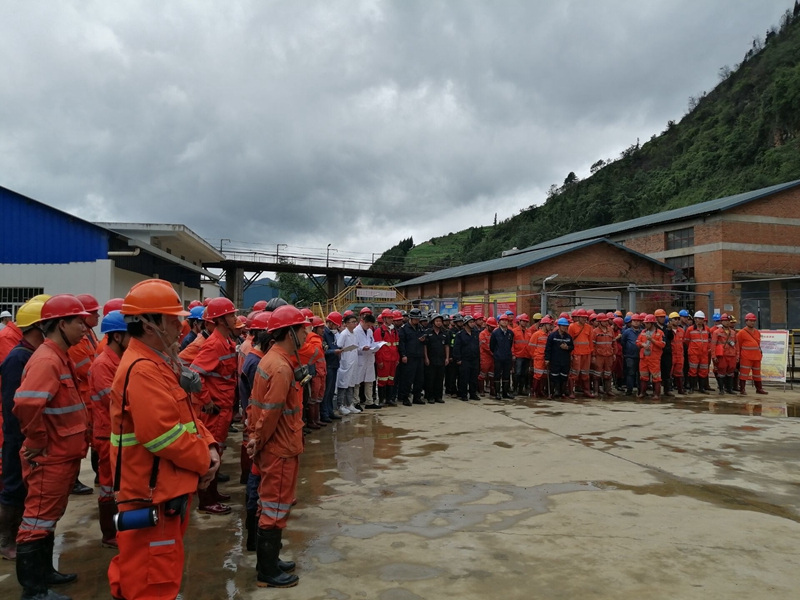 为切实做好重大突发地质灾害的预防和处置,及时有效地实施应急救援,最大限度地减少人员伤亡和财产损失,维护广大人民群众的生命财产安全,6月20日上午,个旧市组织相关单位在卡房分公司3号坑开展山体滑坡、泥石流应急演练,来自个旧市自然资源局、卡房镇政府、西南地质勘查局308队、云锡卡房分公司等相关单位共计150余人参加了此次演练。