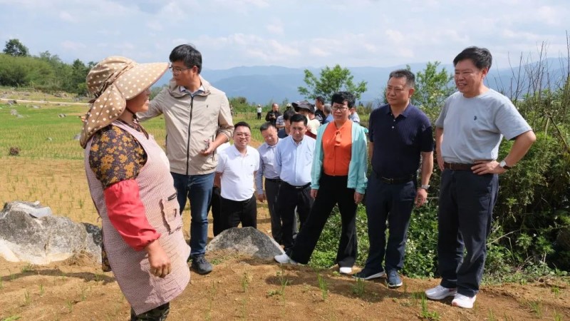 朱有勇院士一行来到田间地头,仔细查看旱种水稻的出苗情况以及病虫害预防情况,并与村民群众沟通交流,指导农户正确进行田间管理,保障旱种水稻稳产增收。