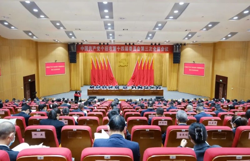 1月6日上午8时30分,中国共产党个旧市第十四届委员会第三次全体会议在市行政中心18栋1楼报告厅开幕。