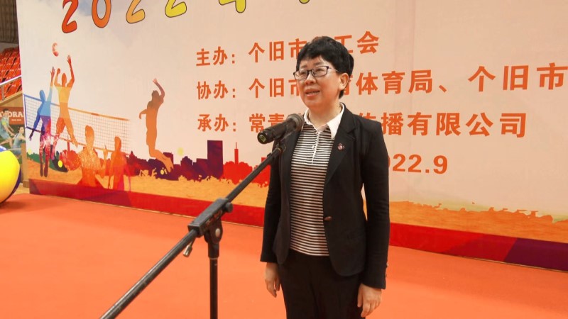 汪霞宣布2022年个旧市职工运动会闭幕。