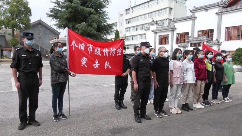 个旧市第一批疫情防控突击队员共18名,包括来自市区各主要医疗机构的医护人员13名和公安干警5名。其中,最先出动的队员于2月16日就奔赴河口参加抗疫,直到4月下旬离开河口回到个旧,他们坚守河口已达60余天。