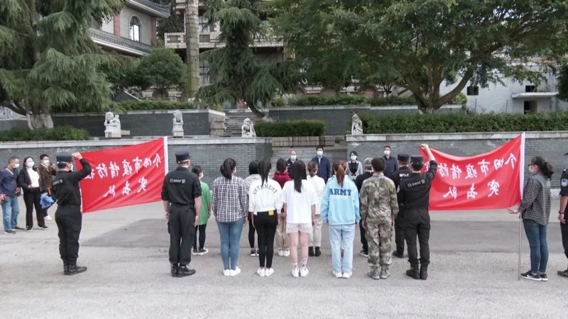 5月3日,个旧市第一批疫情防控突击队员们在原州茶桑果站结束隔离期,他们精神抖擞,队列整齐。