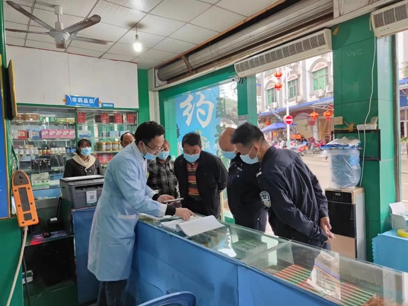 在一心堂药店(百货大楼店),督查组检查了店内“一退两抗”药品销售实名登记执行情况,以及疫情防控三措施落实情况,同时求企业立即整改未严格落实扫码、测体温、戴口罩的问题。