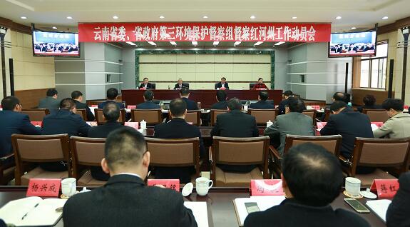 根据省委、省政府统一部署,云南省第三环境保护督察组于11月26日进驻红河州开展环境保护督察工作。11月27日,云南省第三环境保护督察组督察工作动员会在红河召开,督察组组长张登亮、副组长徐璇就做好督察工作分别作了讲话,红河州州委书记姚国华作了动员讲话。