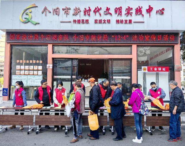为进一步弘扬宪法精神,加强统计法治宣传,营造良好经济普查氛围。12月4日,在第十个“国家宪法日”当天,个旧市统计局、国家统计局个旧调查队、市经普办联合开展普法宣传活动。