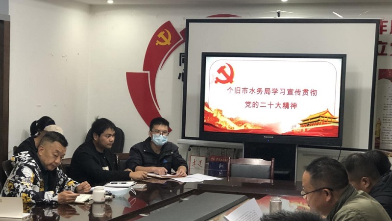 个旧市水务局全体干部职工表示,要把学习宣传贯彻党的二十大精神作为首要政治任务,在学习贯彻中深入领会党的创新理论的道理学理哲理,做到“知其言更知其义、知其然更知其所以然”,坚持知行合一,切实把党的创新理论贯彻落实到工作各方面全过程,推动党的二十大精神在水务工作中走深走实,见行见效。