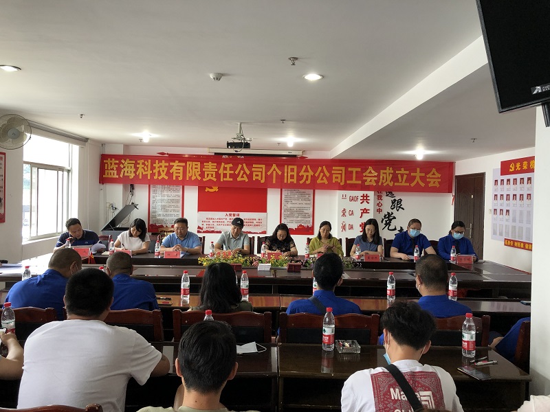 5月30日,蓝海科技有限责任公司个旧分公司工会成立大会和职工集体入会仪式启动。云南省总工会蹲点和调研第五组罗阳出席会议并讲话,红河州职工服务中心副主任李雷, 个旧市总工会党组书记、常务副主席杨钧,市交运局相关领导及蓝海科技有限责任公司个旧分公司网约车司机代表50余人参与此次仪式。