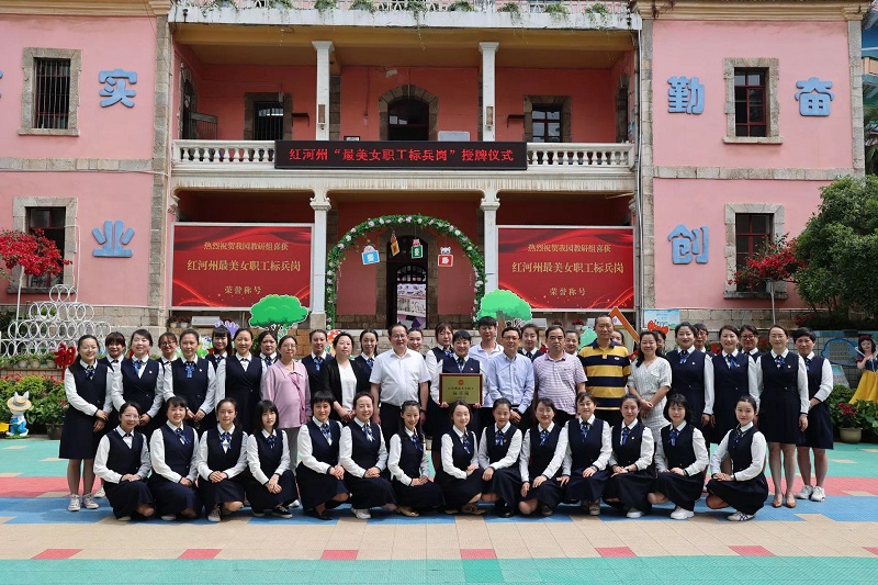 此外,慰问组分别到个旧市人民医院为李勤院长颁发“2022年全国五一劳动奖章”;到个旧市云新有色电解有限公司电炉车间进行“工人先锋号”授牌;对获得“最美女职工标兵岗” 的个旧市机关幼儿园教研组进行授牌。慰问组强调,受到表扬的先进集体和个人,要把荣誉作为新的起点,坚持不骄不躁,埋头苦干,要大力弘扬劳模精神、劳动精神、工匠精神,唱响“劳动最光荣、劳动最崇高、劳动最伟大、劳动最美丽”的时代主旋律,为推动个旧市高质量跨越式发展凝聚起工人阶级的磅礴力量,以实际行动迎接党的二十大胜利召开!