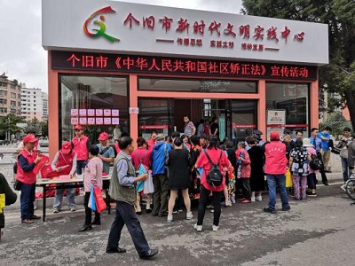 创新了“漫画普法”模式,“七五”期间共绘制并发布了人民调解、社区矫正等7组普法漫画作品,被各级媒体纷纷转载和推广。开设了“个旧司法行政”微信公众号,五年来该微信公众号共发布普法信息322期555条。在个旧市第一高级中学打造了由序厅、法律法规厅、安全知识厅、禁毒教育厅、警示教育厅、社会关爱厅、阳光成长厅等7个展区构成的“个旧市青少年法治宣传教育基地”,基地建设总面积达496㎡,耗资95万余元,投入使用以来共接待参观人员5000余人次。