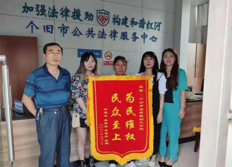 “我们不会说好听的话,只能送上一面锦旗,表达我们对法律援助的感激之情!”近日,受害人家属拿到赔偿款后,激动地将一面写着“为民维权、民众至上”的锦旗送到个旧市司法局公共法律服务管理科。
