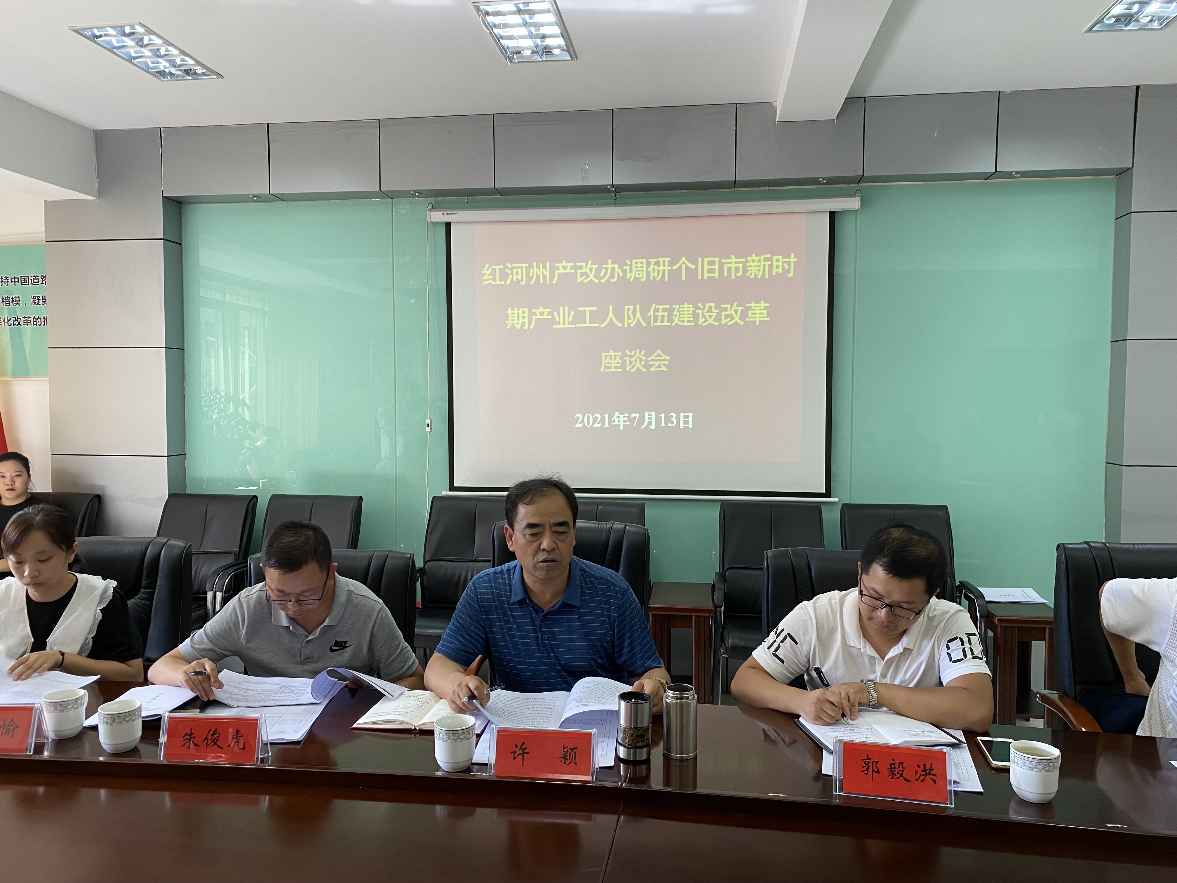 7月13日,红河州总工会四级调研员、红河州产改办副主任许颖一行4人到个旧市调研新时期产业工人队伍建设改革工作,市总工会党组成员、副主席张艳及劳动经济部部长张玉军陪同。