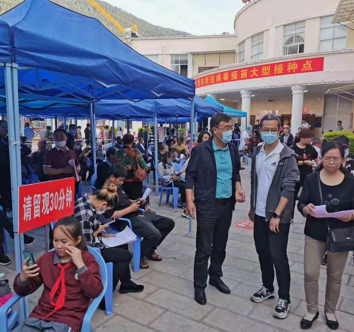 为保证此次疫苗接种高效有序,市人大常委会副主任、市总工会主席许德辉高度重视,亲自到现场进行指导。在接种过程中,志愿者们拉好警戒线,督促群众佩戴好口罩,引导前来接种群众做好相关身份信息登记,分组按顺序进入等候区,由专业医护人员有序说明接种注意事项,在接种区与留观区流动巡视及时做好医疗救治保障,全程为接种点的医疗安全保驾护航,确保疫苗接种工作到位。