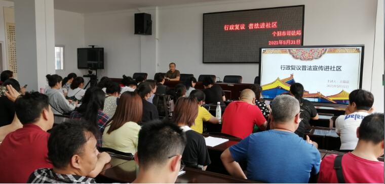 为进一步提升行政复议的知晓率,充分发挥行政复议在化解行政争议、维护人民群众合法权益、推进法治政府建设以及实现社会和谐稳定等方面的重要作用,近日,个旧市司法局到个旧市城区街道办事处开展行政复议进社区集中宣讲活动。城区街道办事处下辖的26个社区党总支书记、主任及相关工作人员50余人参加活动。