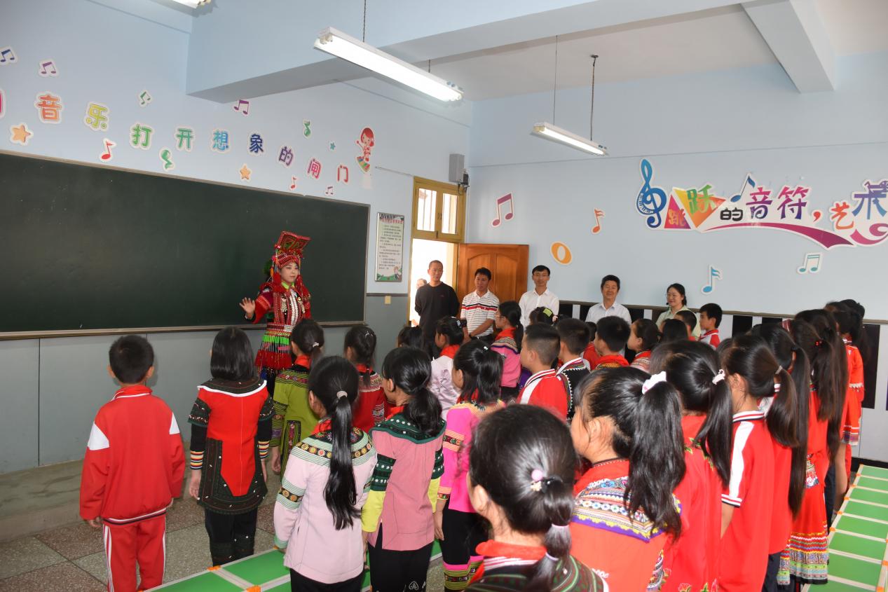 在鄢棚小学,检查验收组随着讲解员的脚步,全面查看了校园在软硬件方面的文化氛围营造情况,参观了学校“民族文化研学坊”,欣赏了哈尼童谣《其多列》、武术《哈尼拳》。检查验收组认为,该校办学特色鲜明,校园文化氛围浓厚,积极弘扬中华优秀传统文化,能够结合生源特点、教师特长扎实开展民族团结教育,不断铸牢中华民族共同体意识。就下一步示范创建工作,检查验收组强调,要全面贯彻落实党的教育方针和民族政策,以铸牢中华民族共同体意识为主线,紧紧围绕“中华民族一家亲,同心共筑中国梦”目标,党建引领、立德树人,对学校“一带三促”示范创建工作内涵进一步挖掘,为各族学生提供优质、温馨的育人环境,把示范创建工作向纵深推进。