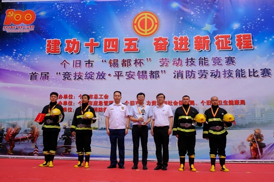 在中国共产党百年华诞即将来临之际,为全面加强消防救援队伍和消防安全管理,个旧市总工会践行初心为民办实事,于5月11日至12日联合市消防救援大队、市应急局、市人社局、市卫健局成功举办以“喜迎100周年 建功‘十四五’、奋进新征程”为主题的个旧市“锡都杯”首届消防劳动技能竞赛。