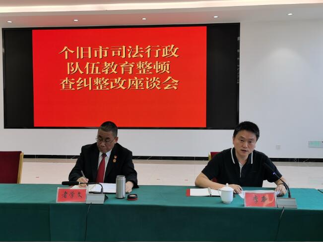 在个旧市司法行政队伍教育整顿查纠整改环节座谈会上,市司法局局长李新就个旧市司法行政队伍教育整顿查纠整改环节整治的目标、主要工作内容及措施,开展顽瘴痼疾整治打算作了介绍,重点介绍了个旧市司法行政系统确定“N”的内容。