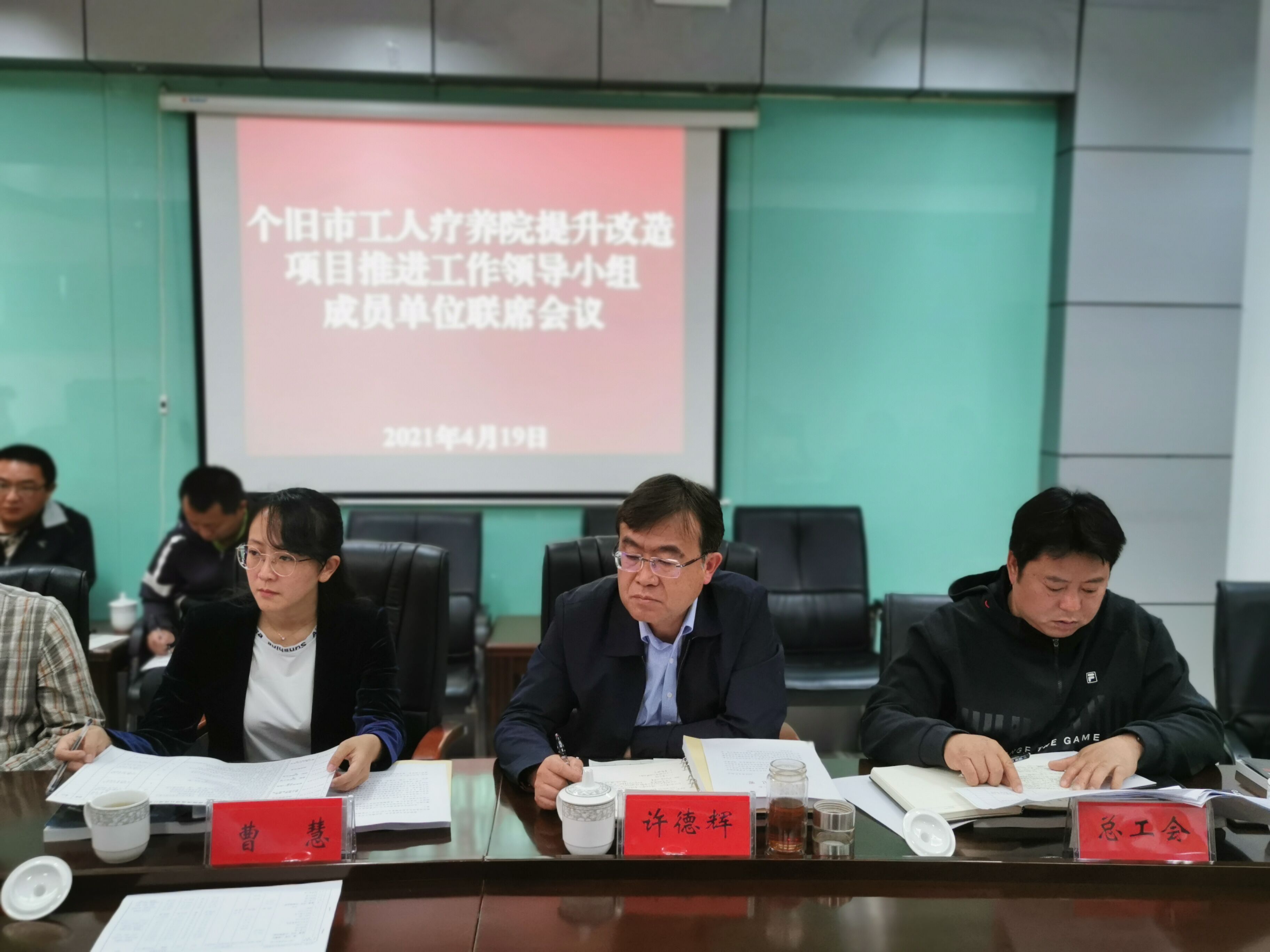 为认真贯彻落实省总工会关于启动个旧市工人疗养院提升改造建设各项工作的要求,4月19日,市工人疗养院提升改造项目领导小组召开了个旧市工人疗养院提升改造项目推进工作会。市政府副市长曹慧,市人大常委会副主任、市总工会主席许德辉和市工人疗养院提升改造项目领导小组成员单位主要负责人参会。