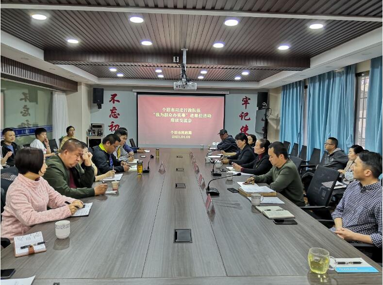 4月8日,个旧市司法局结合行政执法协调监督工作职责,与市民政局就行政执法工作进行了座谈交流,开展行政执法监督进单位活动。
