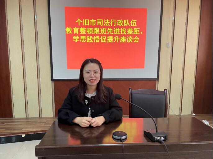 开展此次座谈会旨在发挥先进典型引领示范作用,用身边人身边事引领示范教育,使青年干警学有榜样、赶有目标,通过压担子、铺路子、搭梯子,促进青年干警快速提升思想、业务水平,以昂扬的精神风貌,尽快成长为司法行政系统的骨干力量,为司法行政系统工作高质量发展作出自己的贡献。下一步,个旧市司法行政队伍将进一步选树先进跟班学习对象,制定跟班学习计划表,组织跟班学习人员带着政策、带着课题、带着感情,通过“面对面”“1+1”等方式,向先进典型深入交流学、共同促进学、渐悟提升学,确保司法行政队伍教育整顿取得实效,着力打造一支党和人民信得过、靠得住、能放心的新时代锡都司法行政铁军。