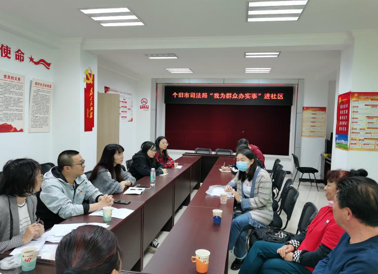 自开展政法队伍教育整顿以来,个旧市司法局聚焦群众“急难愁盼”问题,开展“我为群众办实事”进企业、进社区、进村寨、进学校、进单位“五进”活动,补齐基层治理短板,切实解决基层的困难事、群众的烦心事,进一步增强人民群众的获得感、幸福感、安全感。