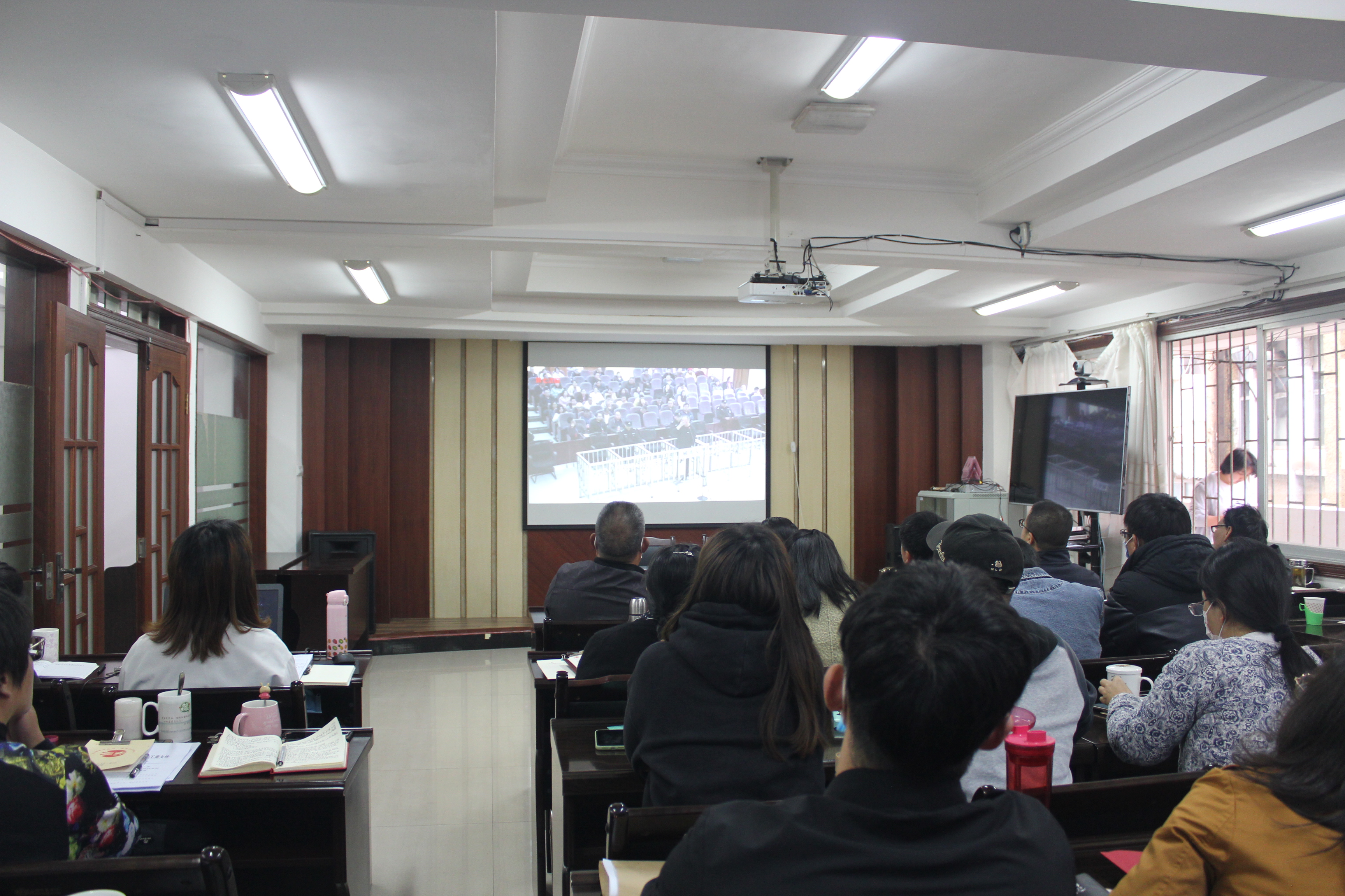 (上图为检查司法行政干警读书笔记、会议记录;下图为组织观看违纪违法案件现场庭审视频)