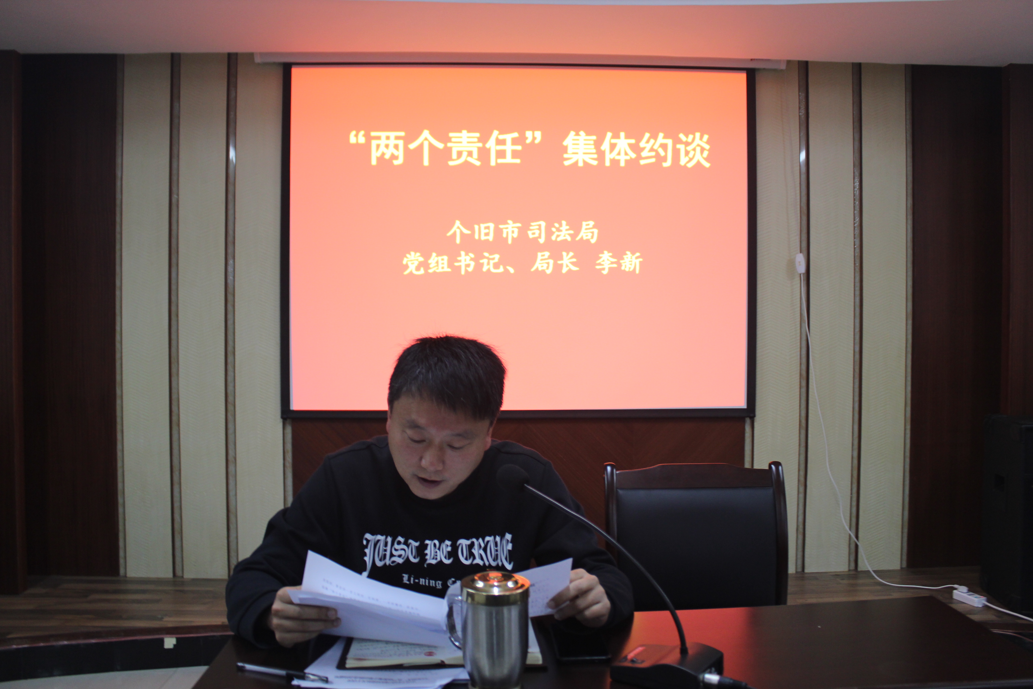 (上图为召开集中整治推进会;下图为党组书记、局长对司法行政干警进行“两个责任集体约谈”)