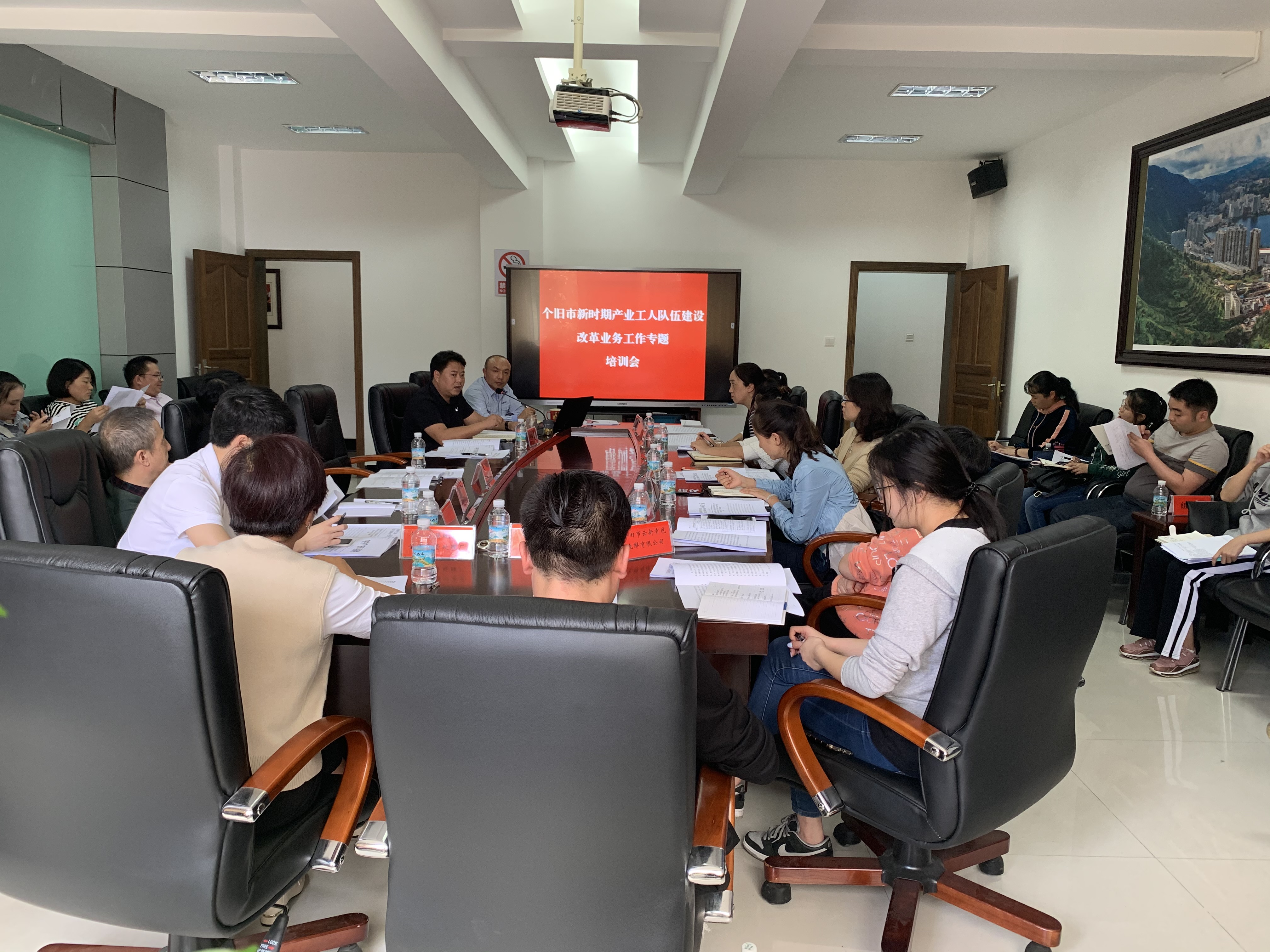 为进一步推进落实个旧市新时期产业工人队伍建设改革工作,9月9日下午,个旧市新时期产业工人队伍建设改革工作协调领导小组办公室组织市产改工作协调领导小组成员单位各挂企联络员及市属各示范试点企业具体负责人集中开展产改业务工作专题培训会。