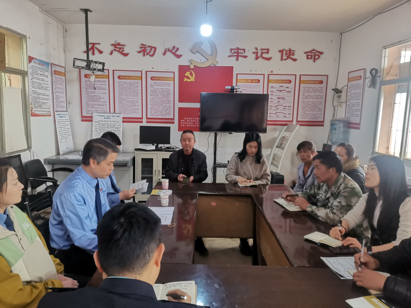 普法强基“进村组”。在核桃寨村委会,普法工作队与村干部一起分析研究普法工作的问题短板、群众对法律内容的需求,并对村干部进行普法工作培训与指导,鼓励和引导其发挥人亲地熟的优势,以“唠家常”的方式,了解群众的生产生活及学法用法情况,并用通俗易懂的语言开展法治宣传活动,做好群众身边的“普法宣传员”。