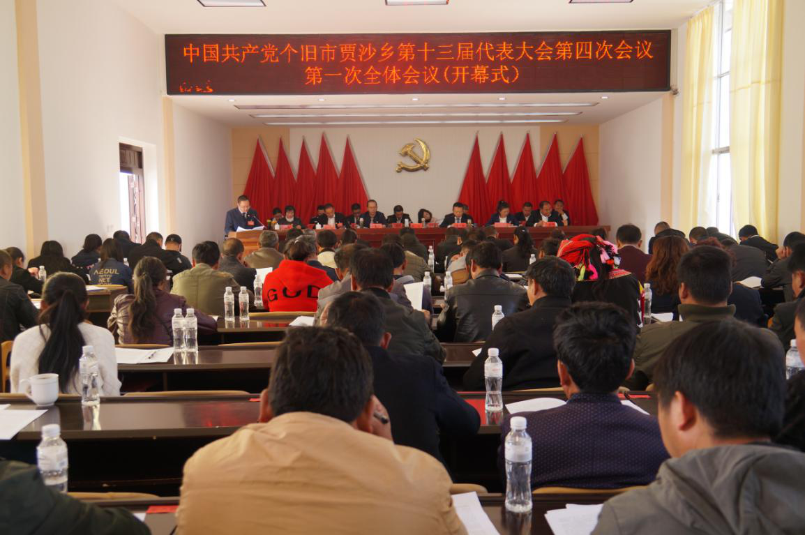 3月14日,贾沙乡胜利召开中国共产党个旧市贾沙乡第十三届代表大会第四次会议,来自全乡的党员代表共计54人参加了会议。