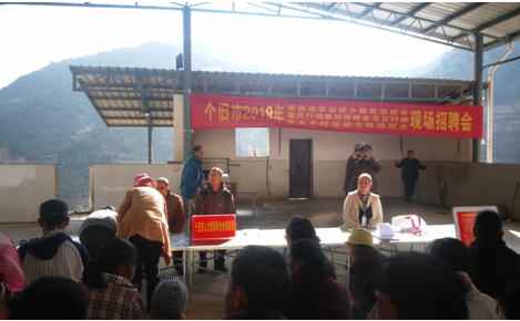 一年之计在于春,2019年1月19日上午9:00,个旧市鸡街镇在鸡街镇邦干村委会布底寨小组举行2019年“民族地区促进少数民族就业、春风行动暨转移就业百日行动、百乡千村劳动力转移就业”现场招聘会,此次招聘会由镇社保办配合市人社局、安达劳务公司共同举办,旨在促进城乡劳动者实现就业再就业,促进农村贫困劳动力实现转移就业。现场提供40余家用人单位招聘信息,合计3600个岗位需求,涉及省内省外各地区,省内主要在个旧市、蒙自市、昆明市,省外是经济发展迅速的大中城市,待遇优厚。