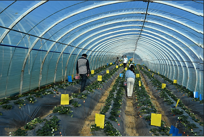 活动中,团员青年参观了老厂镇木登硐草莓扶贫大棚,该大棚是由老厂镇28户无劳动力户及木登硐村委会14户贫困户入股5.6万元,挂包单位和老厂镇政府共同出资于2018年9月建成,占地面积5亩,通过分红的形式让42户贫困户收益。参观过程中,团员青年们积极向技术人员仔细询问草莓栽培技术以及草莓生长环境等相关情况;向农户了解收益情况等。随后,还组织团员青年参加了“抢水瓶”“纸杯传情”等形式多样的趣味游戏,大家在游戏中逐渐敞开心扉,相互问候,亲切交谈,将活动推向一个又一个高潮。