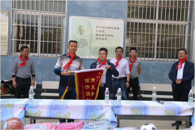 捐赠仪式在福家营小学少先队员代表向爱心人士和与会领导敬献红领巾中拉开了帷幕。鸡街中心小学副校长万忠发表了致辞。他表示:中电建路桥集团有限公司建(个)元高速公路项目总承包二部关注贫困学子,关注国家未来,为社会播洒下了希望的种子,充分展现了扶贫济困、乐善好施、助人为乐的时代新风,彰显了企业的爱心与魄力。为表示感谢,鸡街镇党委政府向爱心企业赠送了锦旗。
