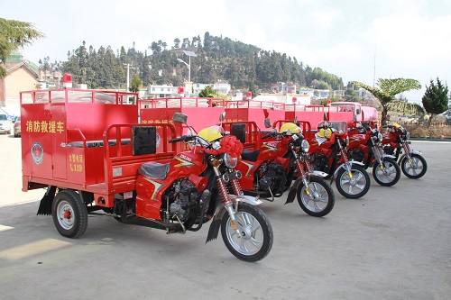 2018年2月13日,贾沙乡迎来一群喜气洋洋的特殊“消防员”——11辆已配备消防器材的消防三轮摩托。消防员灭火防护服、消防手套、消防头盔、消防轻型安全绳、水枪、水带等消防设施全部载装上车,各个村委收到这些“消防大礼包”都表示更有信心维护好本村的消防安全。