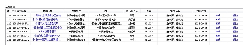 为贯彻落实国家及省登记管理局关于开展事业单位法人公示信息抽查工作要求,加强事中事后监督管理,我局于2022年9月8日通过“中央编办网上赋码和事业单位网上登记管理系统”在市级2021年提交年度报告的234家事业单位中按3%比例随机抽取7家事业单位,抽查情况如下:
