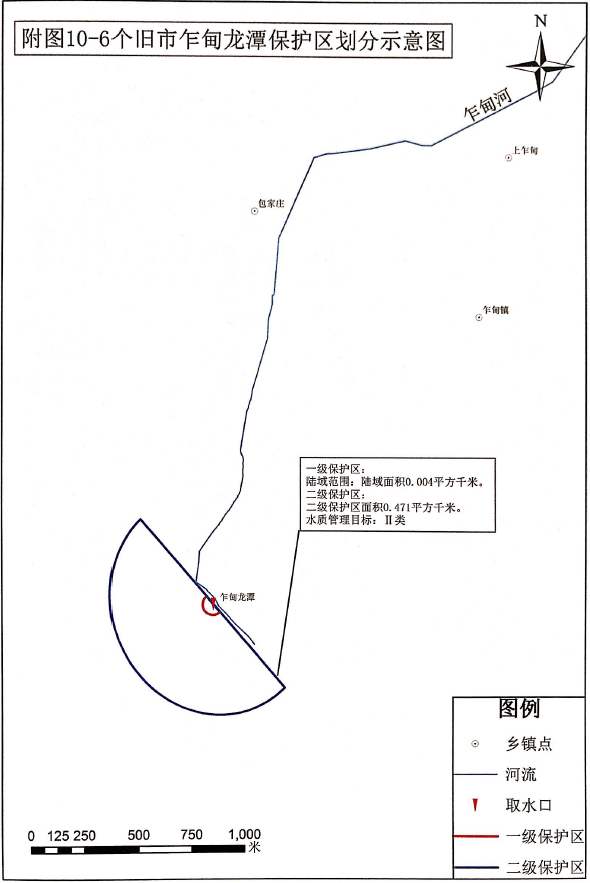 根据《红河州城市集中式饮用水水源地保护规划》(2015),乍甸龙潭已经划定了饮用水水源保护区,2011年红河州人民政府批复,后经复核,保护区范围及面积如下:一级保护区0.004km²,范围为以乍甸龙潭出水口为中心,50m为半径的半圆,现有建筑物和硬化地面的区域;二级保护区0.471km²,范围为以乍甸龙潭出水口为中心,一级保护区外500m为半径的半圆(个旧市乍甸龙潭保护区划分示意图见附图)。乍甸龙潭的水质管理目标为Ⅱ类。目前,乍甸龙潭采取的保护措施如下: