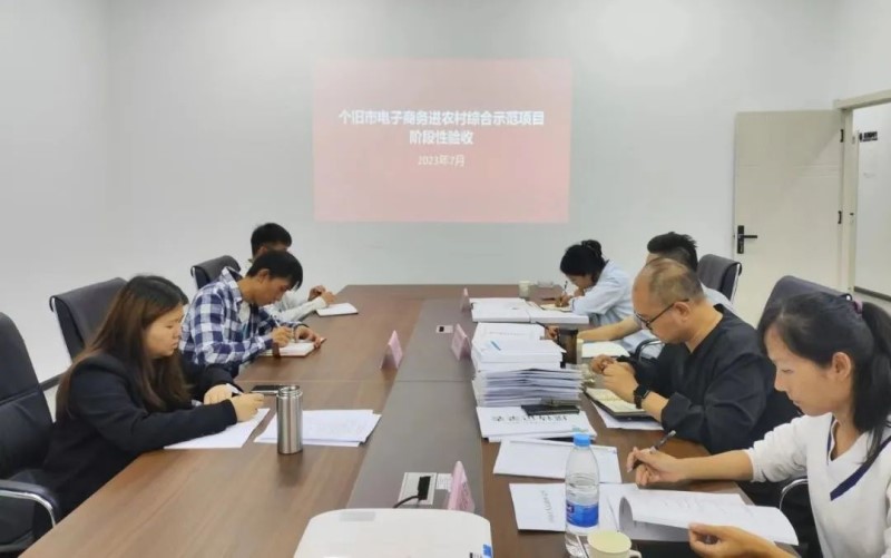 2023年7月6日,个旧市电子商务进农村综合示范项目迎来阶段性验收。由个旧市工信局牵头,市乡村振兴局、市财政局的相关领导一行组成验收工作组,对个旧市电子商务进农村综合示范项目电子商务公共服务中心运营、电子商务公共服务站点运营、县级物流配送中心建设、电商普及以及提升培训等方面的工作情况进行了验收。
