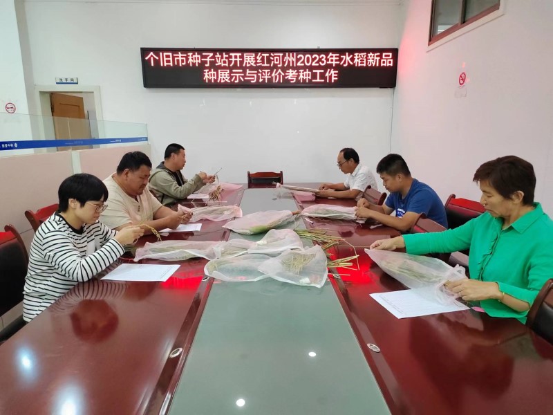 为筛选出高抗、高产、优质且适应个旧生态区域、生产条件和市场需求的新品种,优化品种布局,加快水稻新品种示范推广应用进程,不断提高良种覆盖率,充分发挥良种在粮食生产中的“芯片”作用;为农民朋友选种、购种提供更加直观、科学的示范展示平台;市种子管理站职工开展水稻新品种考种工作。