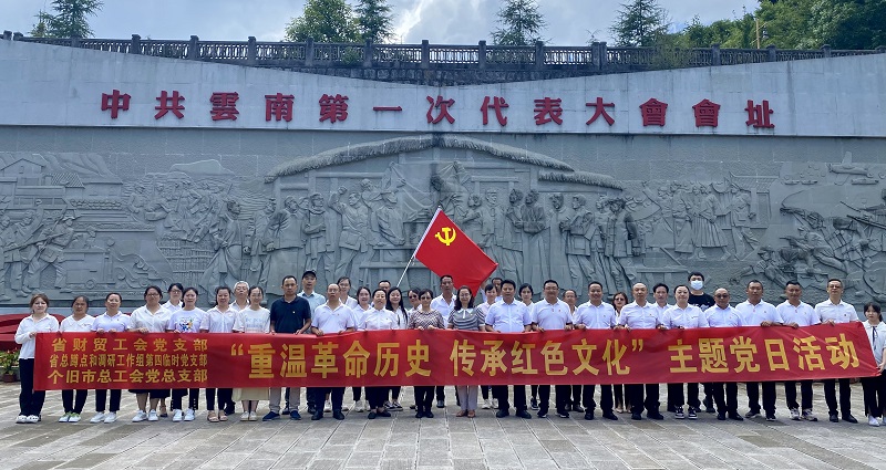 为庆祝中国共产党成立101周年,回顾党的光辉历程,进一步激发基层党组织凝聚力和向心力,发扬党的优良传统。7月15日个旧市总工会党总支组织全体在职党员、预备党员、发展对象及入党积极分子,邀请省财贸工会党支部和省总工会蹲点和调研工作组第四临时党支部40余名到蒙自查尼皮开展“重温革命历史 传承红色文化”主题党日活动。