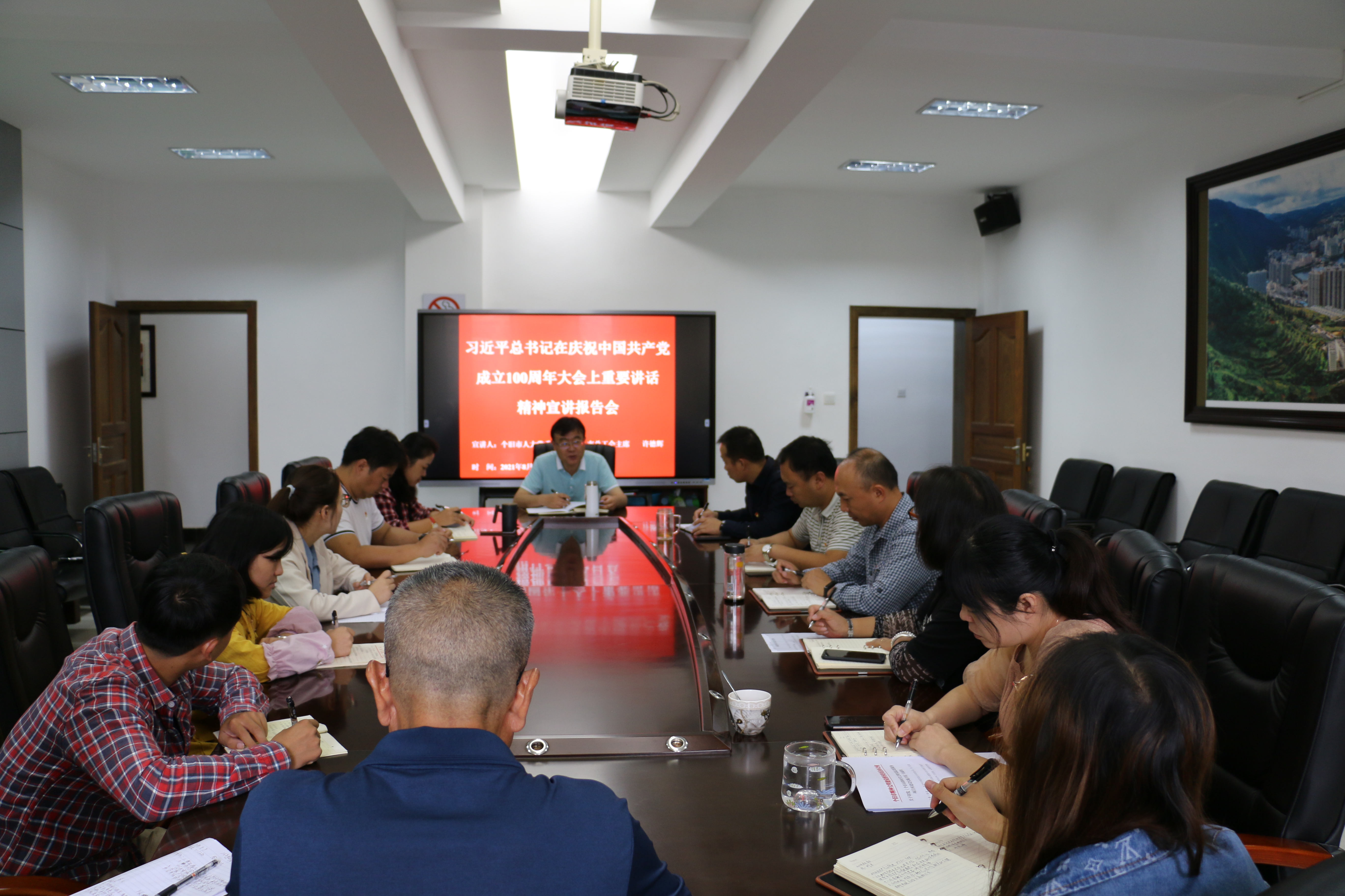 为进一步深化党史学习教育,着力从习近平总书记在庆祝中国共产党成立100周年大会上重要讲话精神中汲取智慧和力量,把学习同工会工作实际相结合,以解决问题的实效检验党史学习教育成效。8月13日、16日,个旧市总工会邀请个旧市委党校教研室高级讲师何艳春,市人大常委会副主任、市总工会主席许德辉为市总工会机关及下属三家事业单位全体党员干部职工进行专题宣讲。