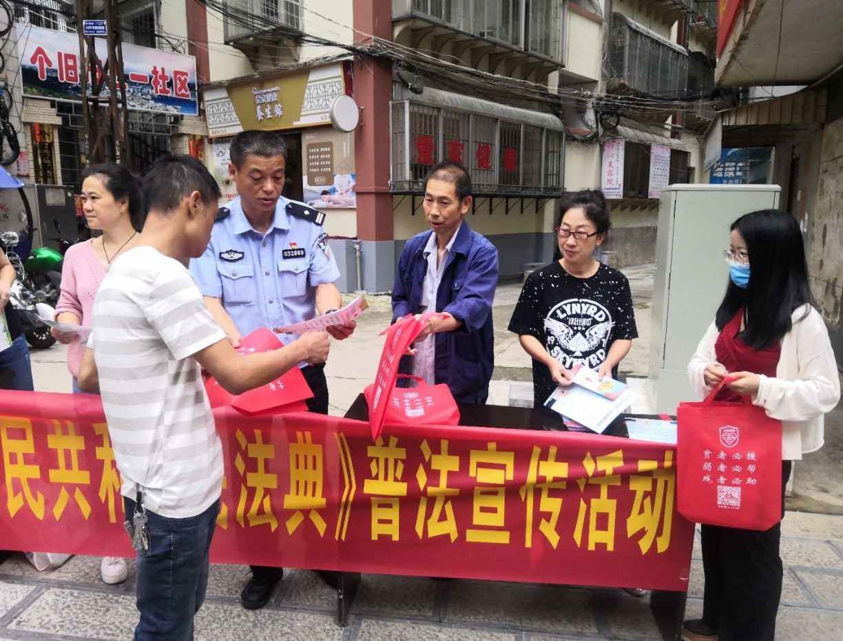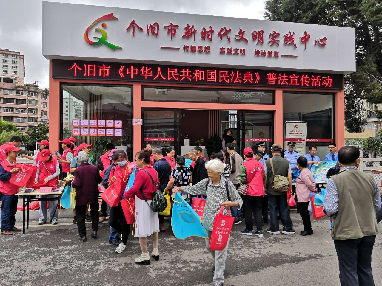 为切实推动民法典走到群众身边、走进群众心里,增强广大群众的法治意识和法治信仰,8月15日,个旧市人大常委会办公室、市委宣传部、市委组织部、市委依法治市办、市司法局、市教体局、市普法办等单位联合在绿春花塘举办了《中华人民共和国民法典》普法宣传活动,并在当天以“1+3+26”网格化形式推动民法典宣传在城区实现全覆盖。