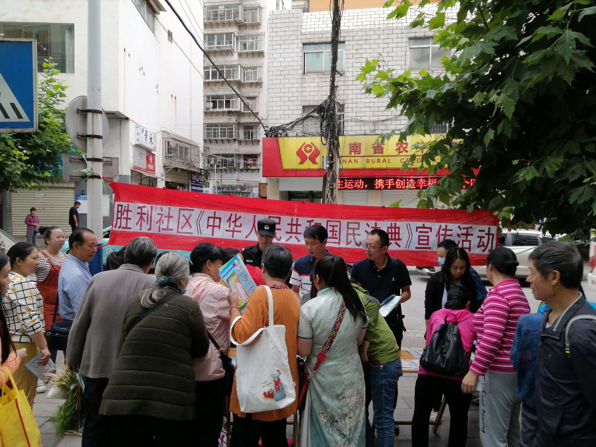 组建3支宣传队伍。组建了由30余名普法志愿者组成的3支民法典宣传队伍,分别在个旧市新时代文明实践中心门口、宝华公园入口、花塘走廊处,将民法典宣传资料发放给群众,并用通俗易懂的语言向群众宣讲了民法典编撰的意义、新增的与居民密切相关的离婚冷静期、居住权、继承人宽恕制度、夫妻共同债务认定、见义勇为免民事责任等内容,引导群众认识到民法典既是保护自身权益的法典,也是全体社会成员必须遵守的规范,引导群众养成自觉守法的意识,形成遇事找法的习惯,培养解决问题靠法的意识和能力。